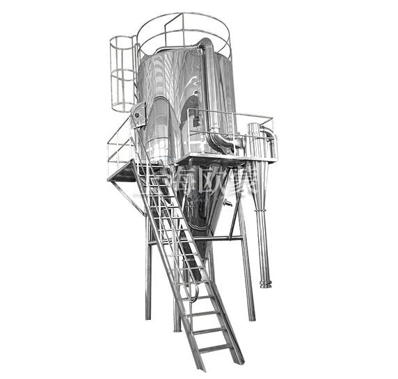 壓力式噴霧干燥制粒機是采用壓力式霧化器借助隔膜泵的壓力將溶液或漿狀的物料粒霧化成細微液滴,使表面積顯著增大,經(jīng)與熱風進行充分熱交換得以快速干燥(十幾秒或幾十秒),從而得到粉體或細小粒產(chǎn)品的設(shè)備。